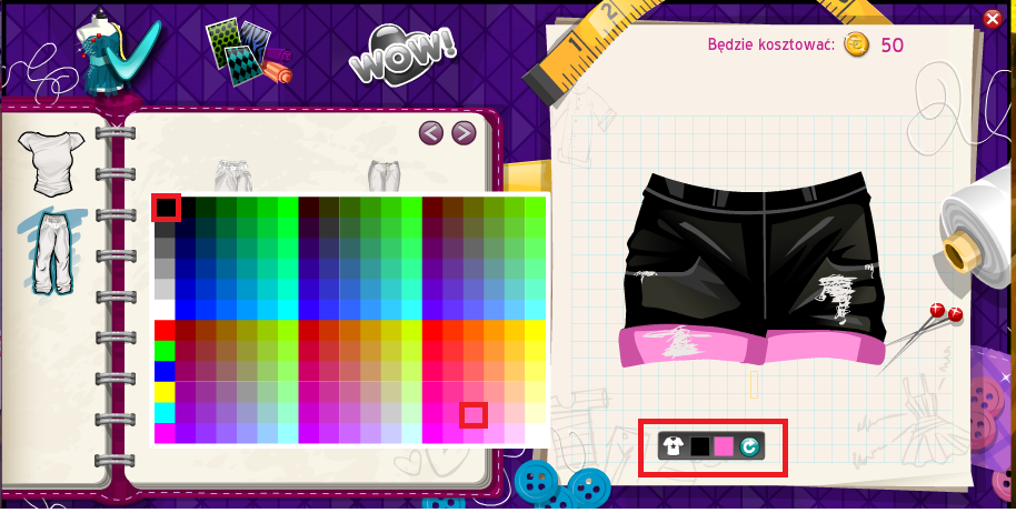 3. Teraz trzeba wybrać kolory bluzki klikamy pod bluzką w taki kwadracik żeby wybrać kolor ja wybieram różowy. Odcień jest zaznaczony w czerwonym kwadraciku na obrazku: