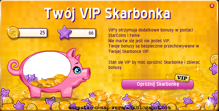 W tej skarbonce chodzi o to, że gdy oglądamy jakiś film czy robimy cokolwiek innego zarabiając sc i fame to tam otrzymujemy bonusy. Opróżnić mogą je tylko VIPy, ale bonusy dostają też zwykli użytkownicy.