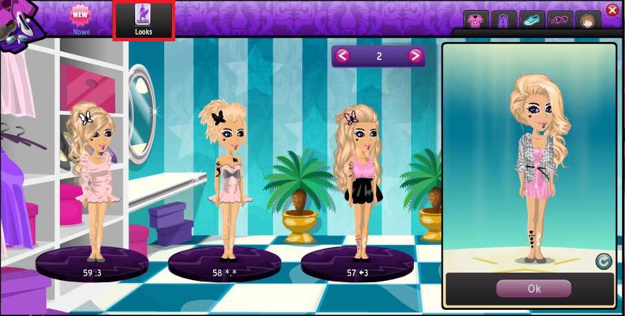 Czyli looks, teraz bezpośrednio możemy wybrać look, który nam się podoba, i nie szukać tych ciuchów po całej garderobie. Można było ubierać swoje looki, ale trzeba było dopiero w nie wchodzić i szukać a tak mamy, prościej.